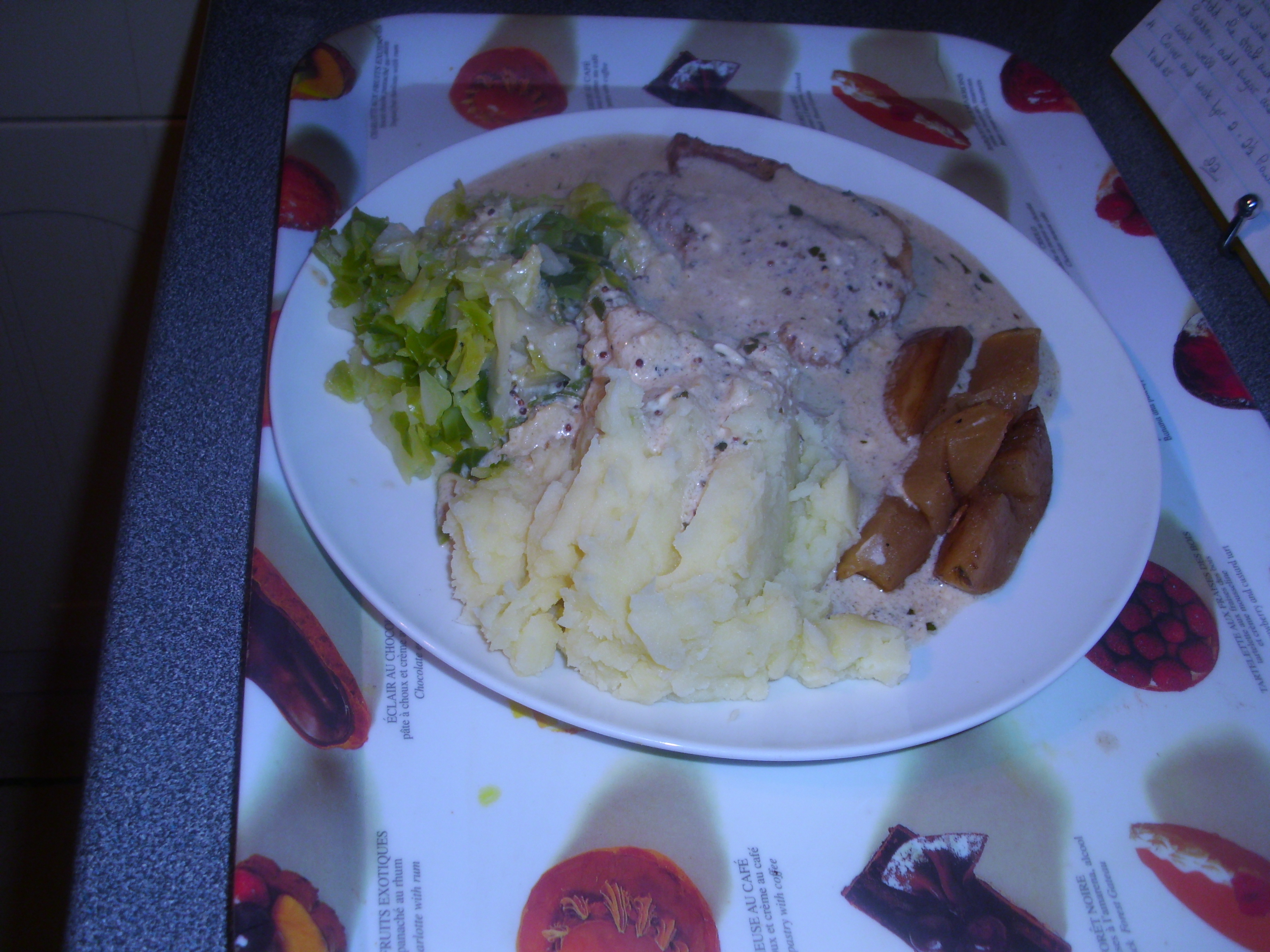- Transfer the pork and apples to a serving plate and keep warm. Return the cooking liquor to the pan and add the sage. Bring to the boil and reduce by half. Take the sauce off the heat and stir in the creme fraiche and mustard. Simmer for a few minutes then pour over the chops and serve.