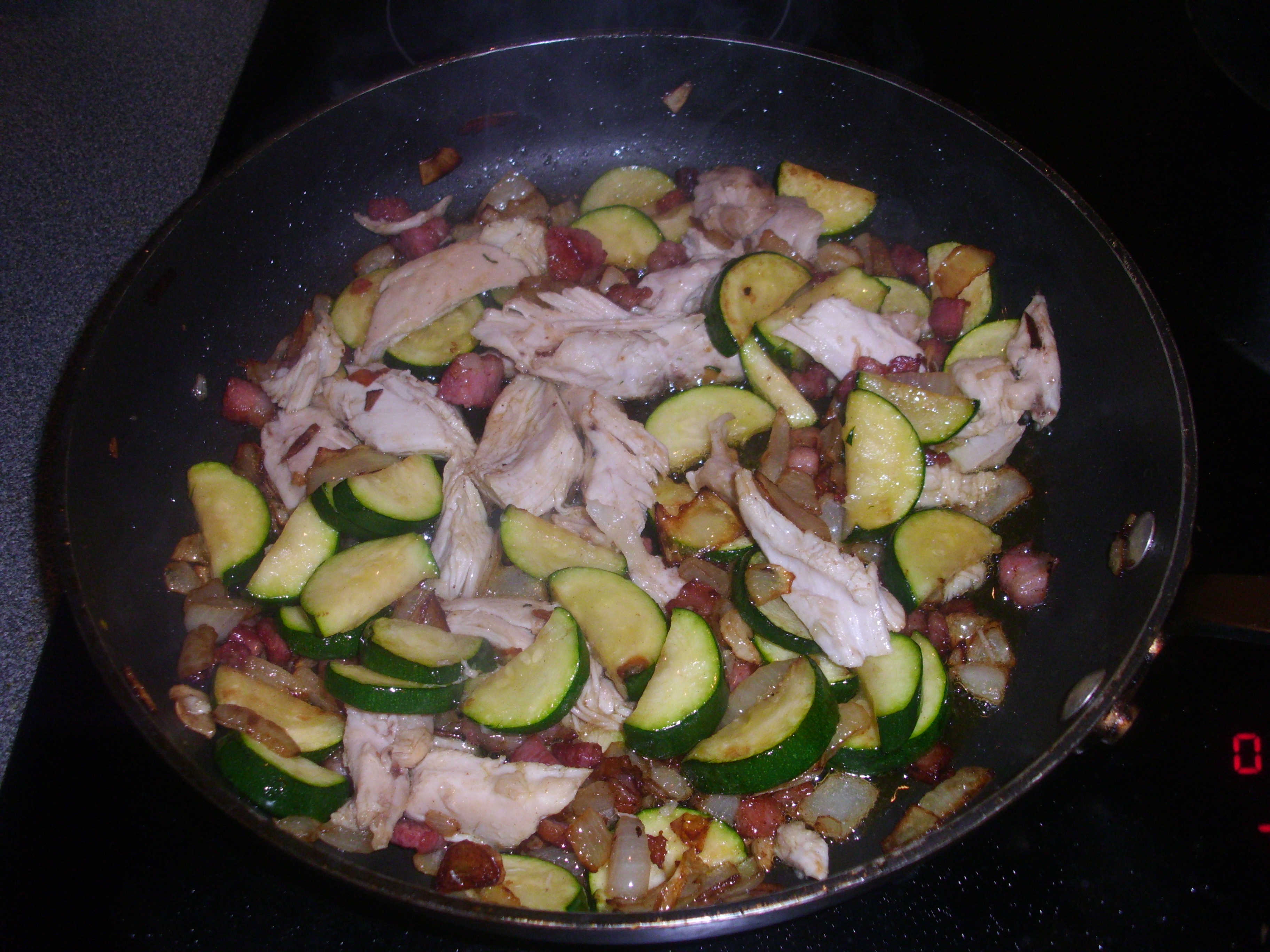 Chicken and courgettes with spaghetti