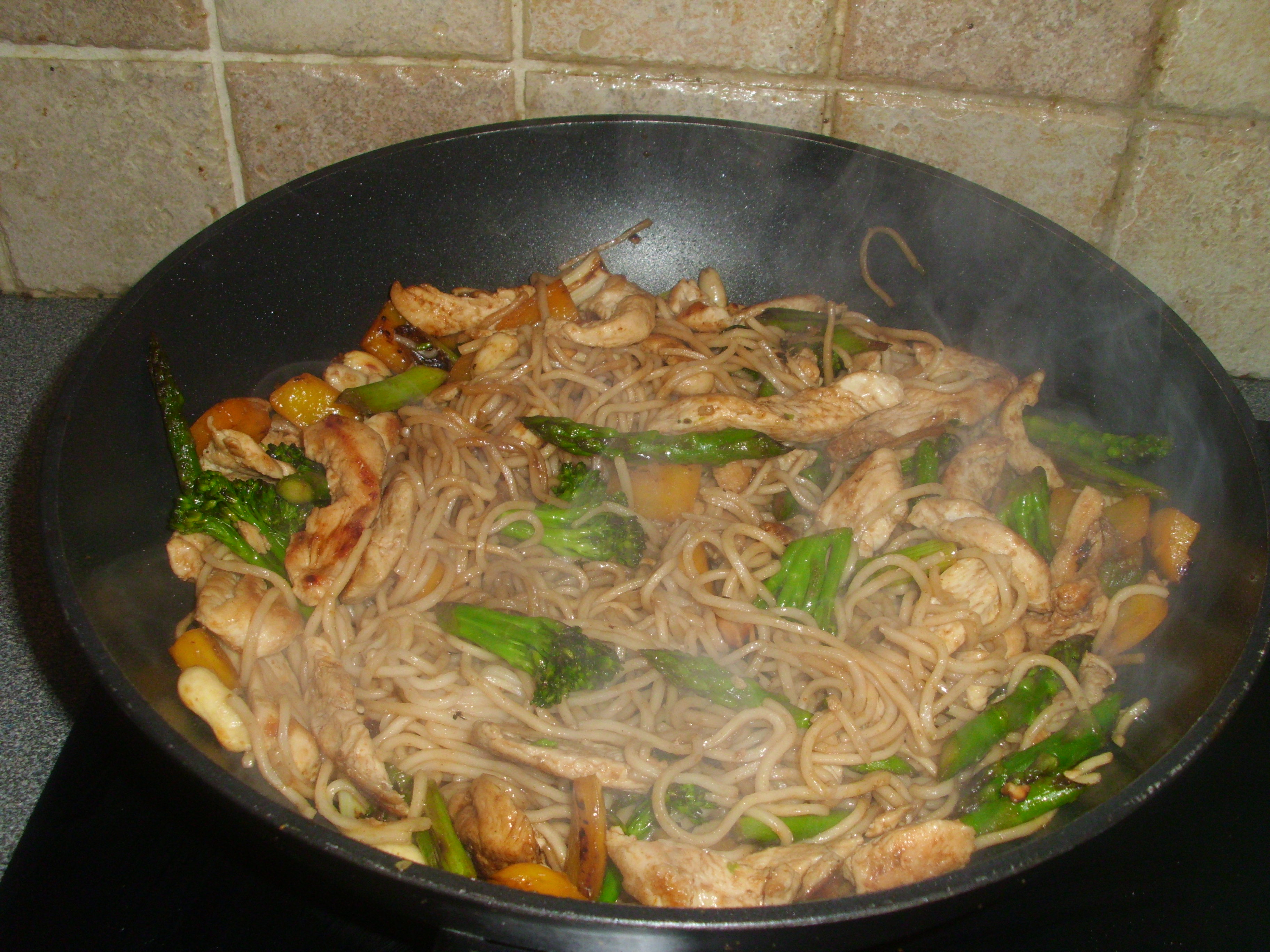 - Heat the oil in a wok and fry the shallots for a couple of minutes until softened. add the chicken and fry for 5 minutes or until lightly brown all over.