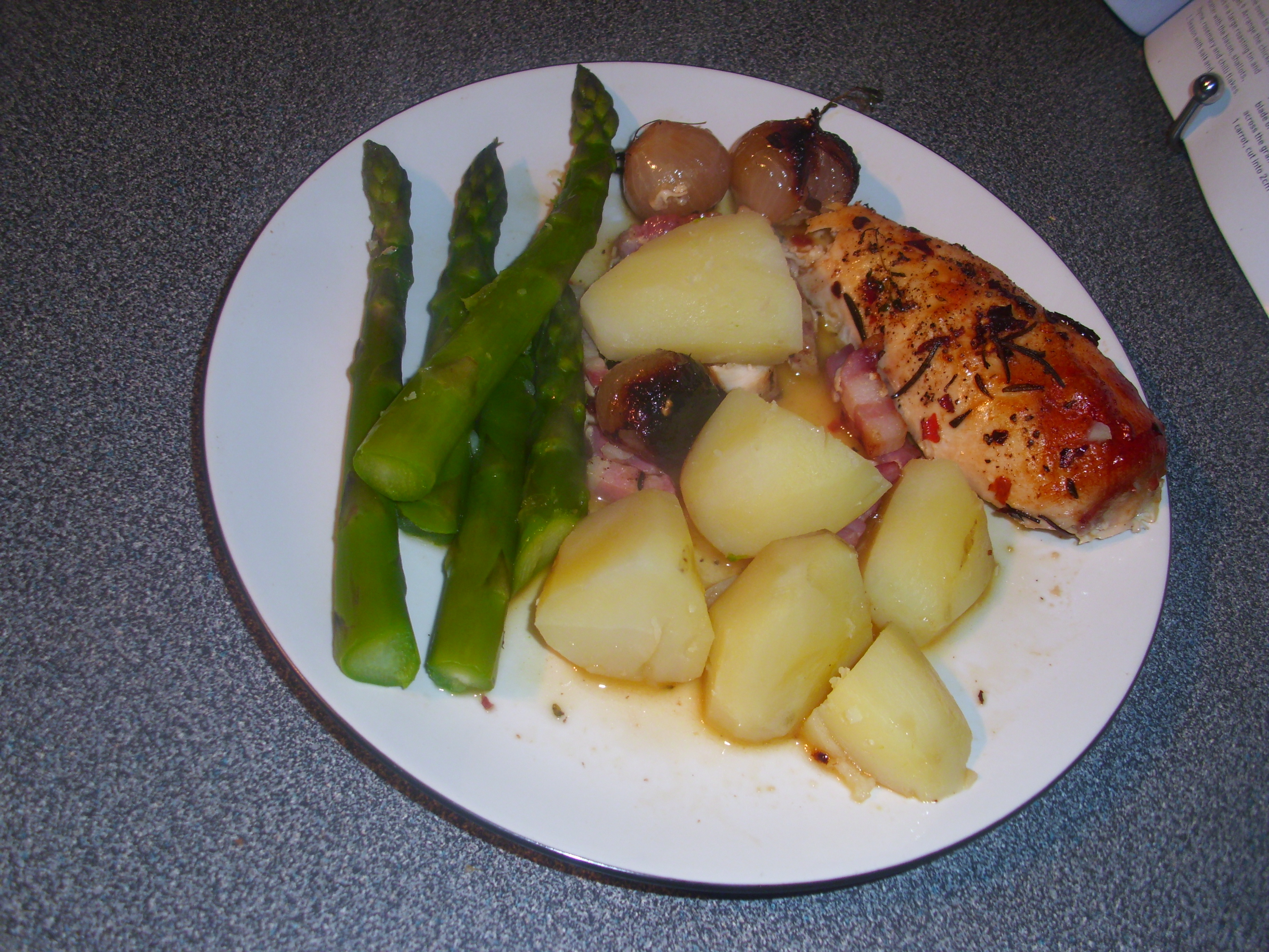 The first time we had this chicken dish was in Rhodes in the Spring. I had just retired and we had rented a Villa for a month. We cooked it on an old tin BBQ in the garden and I don’t think food ever tasted better. Since then we have cooked it over and over again. It is such a simple recipe and it never fails, unless of course you burn the chicken before it is cooked in the centre. Jamie Oliver has a top tip for BBQing chicken that prevents this. Butterfly the joint (pare the meat away from the bone so it is exposed). The bone is then able to conduct the heat so that the chicken is cooked through without running the risk of having a burnt outside while the middle is still raw. Works every time for us!