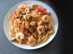 - Meanwhile, heat the olive oil in a large frying pan or wok. Add the garlic and cook gently for a few seconds until it becomes fragrant. Be careful not to let it burn or it will be bitter. Tip in the courgettes, stir to coat in the garlic oil then cook gently for about 4 minutes. They need to be softened but not soggy.